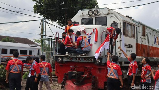 "Hari ini kami melakukan kegiatan menghias lokomotif menggunakan bunga dan beberapa ornamen bertema merah putih yang memberikan nuansa dan semangat kemerdekaan Republik Indonesia," jelas Supriyanto, Kamis (17/8/2023).