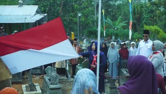 Viral postingan di media sosial kegiatan upacara 17 Agustus yang dilakukan di kuburan. Namun, bukannya seram, suasana khidmat tampak menyelimuti peserta upacara.
