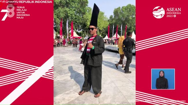 Ricky Ardianto, pria asal Surabaya mencuri perhatian Istana Merdeka saat upacara penurunan bendera dalam peringatan HUT ke-78 RI. Ricky memakai peci khas Madura yang bikin Presiden Jokowi tertawa. Berkat pakaian adat Madura, Ricky bisa membawa pulang hadiah sepeda dari Jokowi.