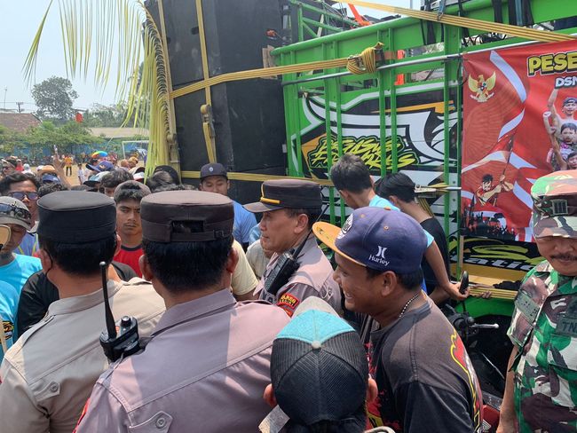 Bahkan polisi sudah mengimbau agar tidak ada sound system besar. Namun imbauan itu tidak dihiraukan. Truk-truk tersebut dihadang Polsek Plosoklaten dipimpin Iptu Dwi Widodo bersama Polres Kediri. sebelum menuju garis start.