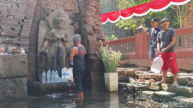Hal ini membuat warga di beberapa desa di Kecamatan Gempol mengandalkan air dari Candi Sumber Tetek di Dusun Belahan, Desa Wonosunyo. Setiap hari, puluhan warga mengambil air di petirtaan peninggalan Prabu Airlangga ini.