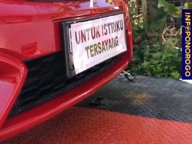 "Saya cek ke lokasi, ternyata memang benar di pelat nomornya ditulis Hadiah Untuk Istriku Tersayang," imbuh Sofi.