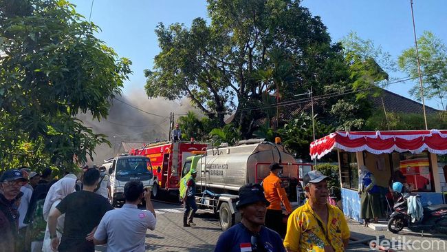 Kebakaran membakar sebuah rumah di Jalan Jemur Wonosari Gang 1, Wonocolo, Surabaya. Rumah yang terbakar tersebut merupakan gudang baju grosir online.