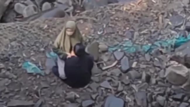 Dalam video berdurasi 40 detik itu terlihat sepasang muda-mudi duduk di tepi sungai dekat air terjun. Mereka duduk dengan posisi saling berhadapan.