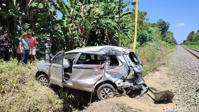 Saat mobil itu sudah hampir bisa melintasi jalur KA itu, pada waktu yang bersamaan KA Pandanwangi melintas. Avanza itu terlempar.