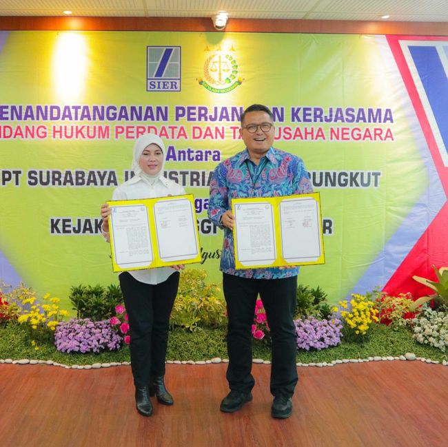 PT Surabaya Industrial Estate Rungkut (SIER) melakukan penandatanganan Perjanjian Kerja Sama (PKS) dengan Kejati Jatim. PKS ini tertuang dalam bidang hukum perdata dan tata usaha negara.