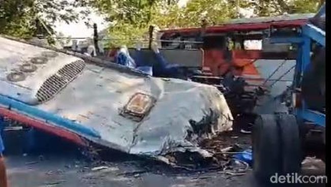 Sedangkan Bus Eka Cepat juga ringsek parah. Bodi bus ringsek terhantam Bus Sugeng Rahayu. Tampak puing-puing bus yang berserakan di aspal.