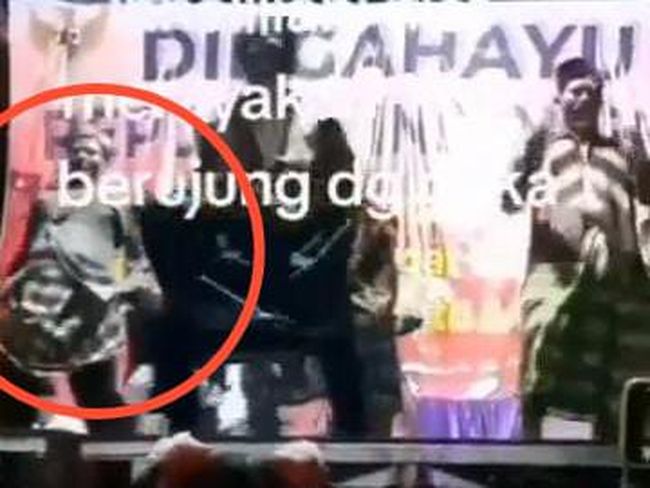 Namun tiba-tiba ia jatuh tersungkur di atas panggung. Saat momen itu, peserta lainnya masih belum sadar dan tampak masih asik berjoget sambil mengerubungi korban.
