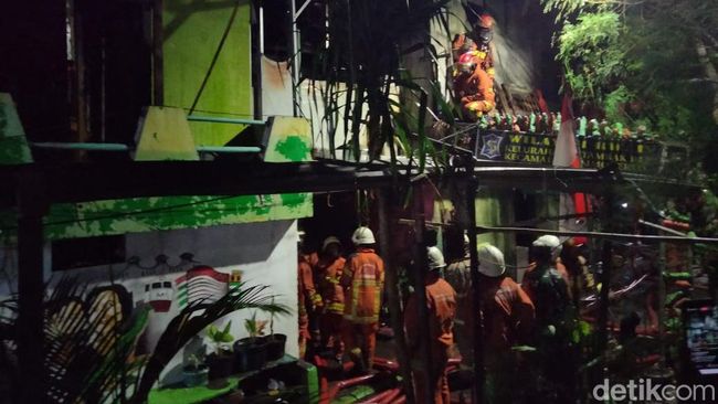 Pantuan detikJatim, hingga pukul 21.38 WIB, sejumlah petugas pemadam yang diterjunkan ke lokasi masih melakukan pembasahan. Terlihat pula sejumlah warga turut membantu proses pembasahan di permukiman warga yang cukup sempit itu.