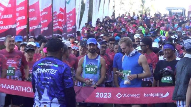 Sebanyak 1.300 pelari mengikuti Bromo Marathon 2023. Selain pelari lokal, pelari 23 negara juga ambil bagian menaklukkan trek menantang lereng Gunung Bromo.