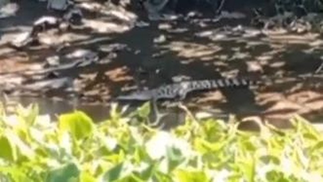 Seekor buaya terekam kamera muncul di kawasan sungai di Nginden, Surabaya. Tim Gabungan BPBD dan Dinas Lingkungan Hidup (DLH) kini menyusur sungai mencari keberadaan seekor buaya tersebut.