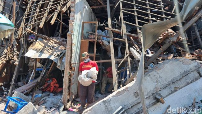 Pantauan detikJatim, hingga Selasa sore sekitar pukul 15.00 WIB masih dilakukan pembersihan barang-barang material. Sejumlah orang bergotong-royong mengambil barang-barang yang bisa diselamatkan.
