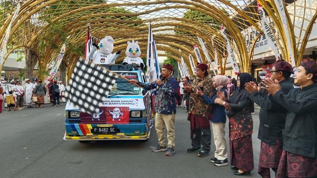 Acara ini disaksikan langsung oleh jajaran komisioner KPU Jawa Timur. Tak hanya itu penyambutan kirab juga diiringi dengan penampilan berbagai seni pertunjukan khas Banyuwangi.