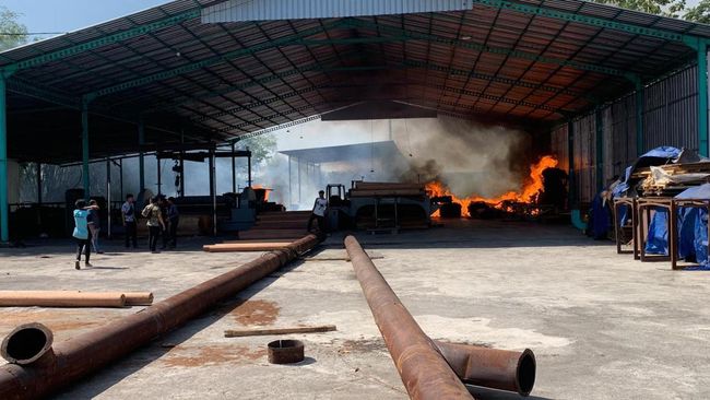 Sebuah pabrik veneer atau lapisan bahan baku triplek di Talun, Kabupaten Blitar terbakar. Kerugian kebakaran ditaksir hingga Rp 200 juta.