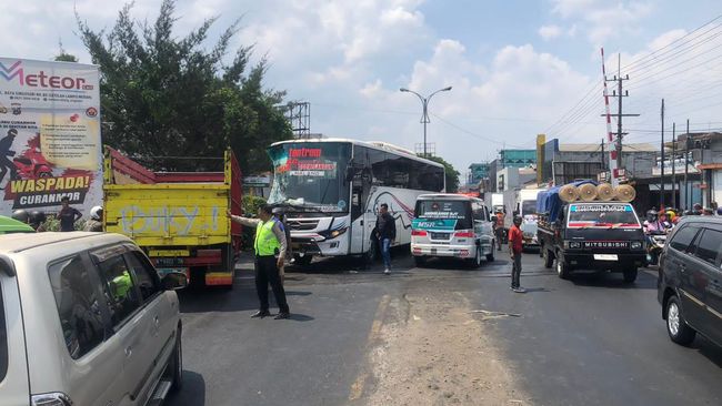 Kecelakaan melibatkan bus Tentrem dengan truk kontainer dan tiga motor terjadi dekat perlintasan sebidang kereta api di Jalan Raya Singosari, Kabupaten Malang. Satu pengendara motor tewas, satu luka berat, dan satu luka ringan.