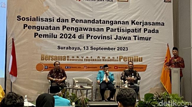 "Sudah tidak saatnya kita berpemilu itu menjadi objek atau korban saja. Karena rakyat lah yang sebenarnya berdaulat," ujar Ketua Bawaslu Jatim A. Warits saat Sosialisasi dan Penandatanganan Kerjasama Penguatan Pengawasan Partisipatif pada Pemilu 2024 di Provinsi Jatim, Rabu (13/9/2023).