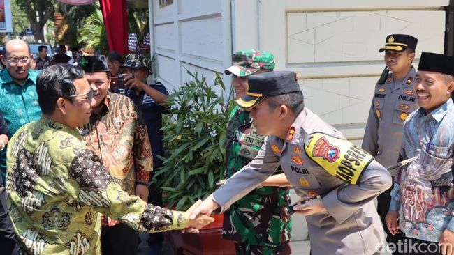 Menkopolhukam Mahfud Md berkunjung ke Pondok Pesantren Mojosari, Desa Ngepeh, Kecamatan Loceret, Kabupaten Nganjuk. Dalam kunjungannya Mahfud meminta Polisi waspada dengan meningkatkan pengamanan jelang tahun politik.