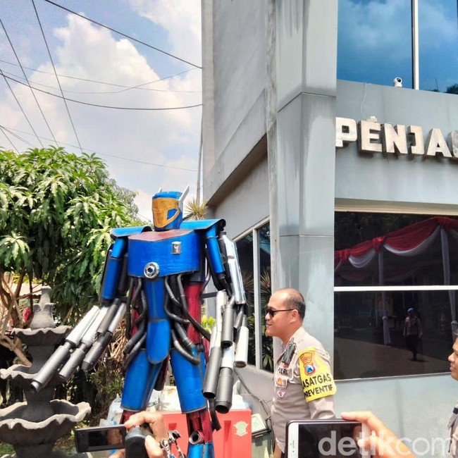 Patung robot ini diresmikan pada Sabtu (16/9/2023) bersamaan dengan peletakan batu pertama pembangunan gedung baru dan peresmian kantor layanan terpadu di Polresta Malang Kota.