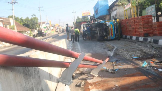 "Saya mengantuk karena kurang istirahat. Mau lewat bawah (Jembatan Ploso), tapi roda naik ke trotoar sehingga terguling," terangnya kepada wartawan di lokasi, Jumat (22/9/2023).