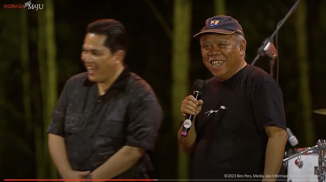 Menteri PUPR Basuki Hadimuljono atau Pak Bas kembali bikin banyak orang tertawa dengan aksi kocaknya. Kali ini dia bersiul di malam apresiasi Nusantara.