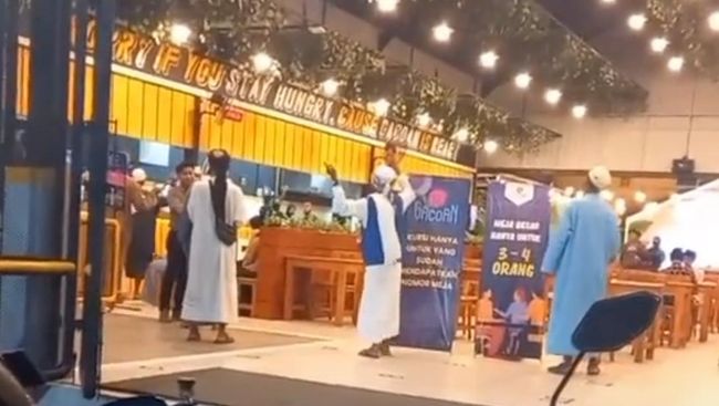 Sebelumnya, video yang diunggah di Instagram berdurasi 38 detik itu menunjukkan ada setidaknya 7 orang yang memakai gamis masuk ke dalam rumah makan.