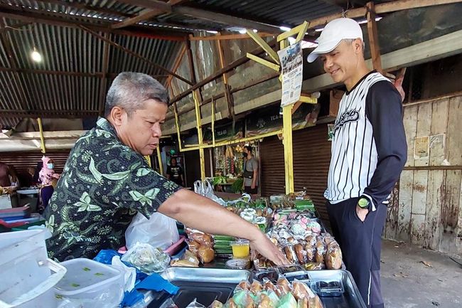 Ganjar juga berinteraksi dengan pedagang kue di pasar bernama Khoirul.