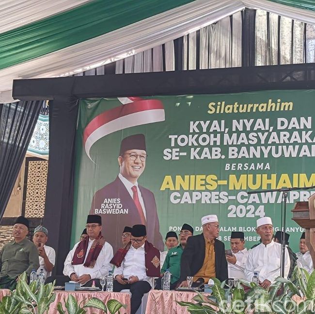 Pasangan bakal capres dan cawapres, Anies Baswedan dan Muhaimin Iskandar berkunjung ke Ponpes Darussalam Blokagung Banyuwangi. Ratusan pendukung yang tergabung dalam barisan Manis Banyuwangi menyambut kedatangan mereka.