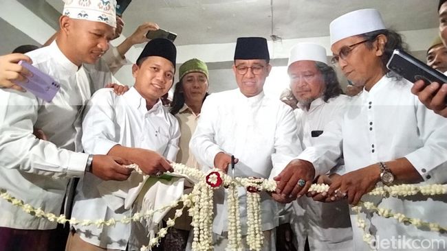 Anies Baswedan meresmikan Posko Aswaja di lingkungan Ponpes Sidosermo atau Ndoresmo, Surabaya. Para kiai dan bu nyai pengurus Aswaja se-Jatim turut menyaksikan peresmian tersebut.