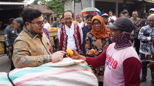 Dalam kesempatan tersebut, Mas Dhito juga berdialog dengan petani yang tengah menjual mangga panen nya di pasar. Bahkan, Ia mencoba mencicipi langsung mangga yang dijual petani.