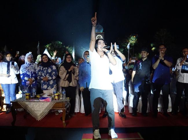 Sejak sore, suasana kawasan GOR Untung Suropati ramai. Selepas magrib ribuan orang berduyun masuk ke lokasi acara. Mereka larut menikmati alunan lagu yang dibawakan oleh vokalis Setia Band Charly Van Houten.