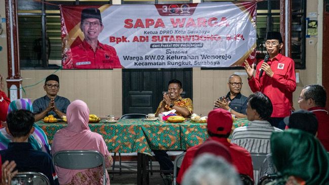 Ketua DPRD Kota Surabaya, Adi Sutarwijono, bertemu tokoh kampung dan warga di kawasan Rungkut Jaya, Kelurahan Wonorejo. Adi menyerap berbagai aspirasi masyarakat tentang pembangunan dan kepentingan warga.