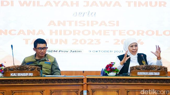 Pemprov Jatim menggelar rakor percepatan penanganan bencana di Jawa Timur serta antisipasi bencana hidrometeorologi 2023-2024. Rapat ini dipimpin Kepala BNPB RI Letjen TNI Suharyanto bersama Gubernur Jatim Khofifah Indar Parawansa serta sejumlah bupati-wali kota di Jatim.