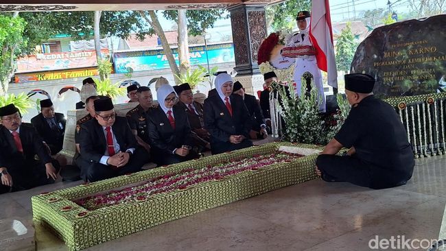 "Seperti biasa tradisi pemprov melakukan ziarah ke Gubernur Jatim pertama, Gubernur Suryo kemudian ke Makam Proklamator juga Presiden Pertama RI Bung Karno," tutur Khofifah, Rabu(11/10/2023)