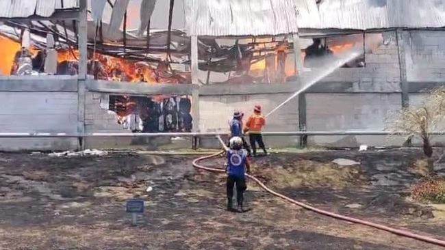 "Yang terbakar dua gudang untuk produksi dan tempat penyimpanan produk jadi. Kondisi kebakaran belum padam, (api) masih besar," terangnya kepada wartawan di lokasi kebakaran, Kamis (12/10/2023).