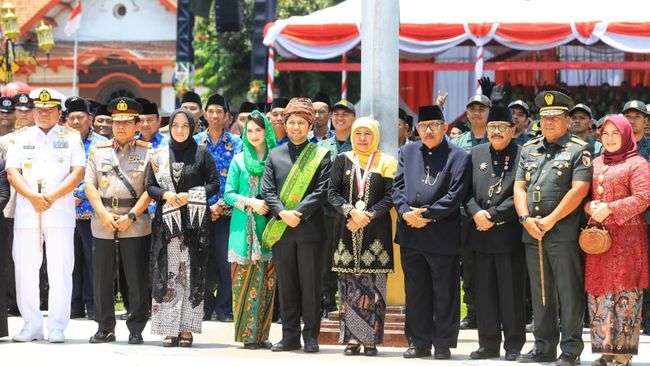 Pemprov Jatim menggelar Upacara Peringatan Hari Jadi ke-78 Provinsi Jatim di Halaman Gedung Negara Grahadi Surabaya.