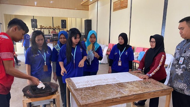 Mereka dilatih membatik dengan metode cap bermotif gading dan bambu.