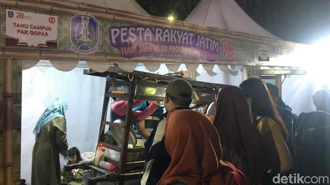 Sebanyak 50 gerobak Pedagang Kaki Lima (PKL) berpartisipasi menyajikan 10.000 porsi makanan gratis bagi warga. Mereka ikut memeriahkan puncak HUT ke-78 Provinsi Jawa Timur di depan Gedung Negara Grahadi. Para PKL itu bersyukur karena makanan yang disajikan diserbu warga.
