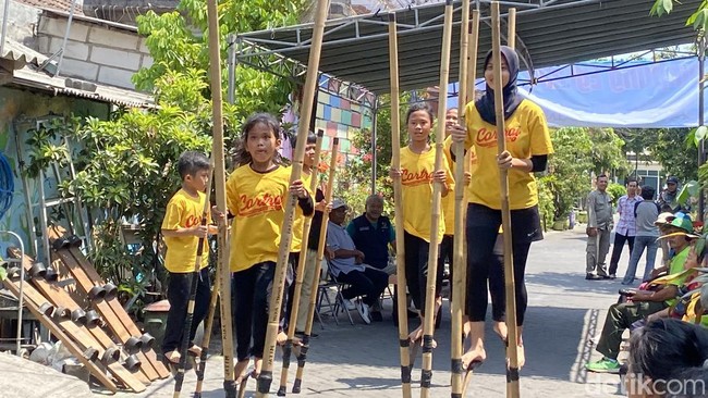 Tempat itu bernama Kampung Egrang Jambangan. Kampung di Jalan Jambangan VII B Surabaya ini punya tujuan utama mengajak anak-anak melestarikan permainan yang sudah sangat jarang dimainkan ini.