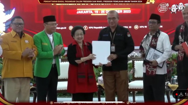 Sebagai informasi, pendaftaran bakal calon Presiden dan Wakil Presiden dibuka pada 19-25 Oktober 2023. Pendaftaran dilakukan di kantor KPU RI, Menteng, Jakarta Pusat.