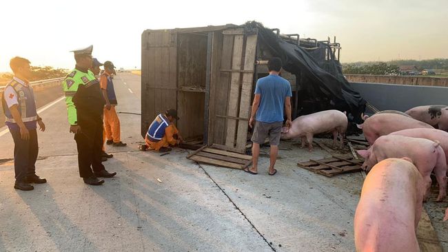 "Betul telah terjadi kecelakaan tunggal truk muat babi dari Bali tujuan Pontianak terguling di Tol Nganjuk," ujar Kasat PJR Ditlantas Polda Jatim Kompol Erik Bangun Prakasa, Kamis (19/10/2023).