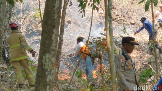 "Lokasinya masuk ke hutan, sehingga tidak bisa dijangkau mobil damkar, " jelasnya.
