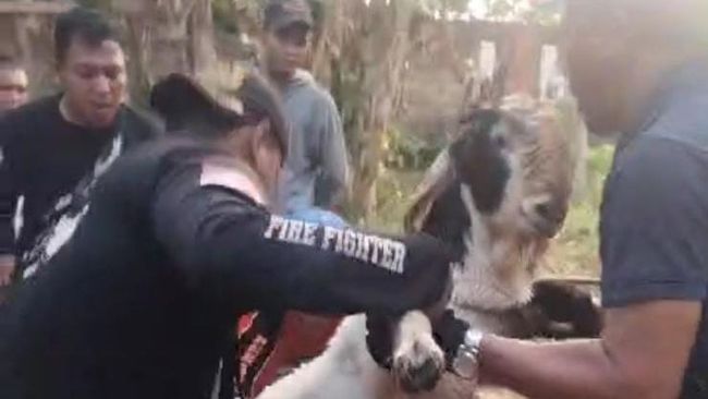 "Terima kasih kepada damkar sudah menyelamatkan kambing saya. Saya terima kasih sekali," kata Pipit.