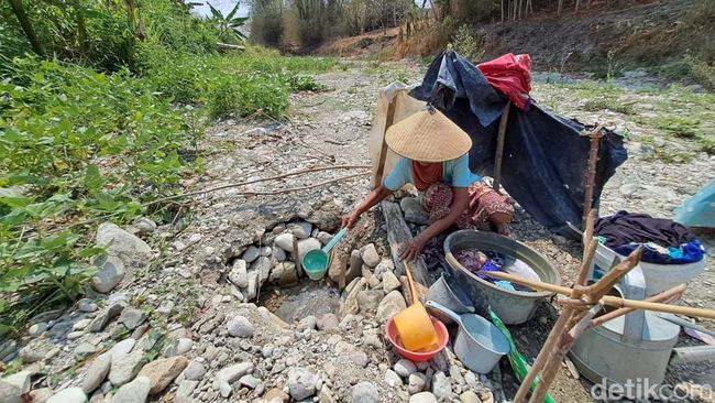 Kemarau panjang disertai panas ekstrem dampak El Nino menyebabkan 5 dusun di Jombang mengalami krisis air bersih. Selain bantuan dari pemerintah, warga juga mengais air dari sungai yang mengering untuk mandi dan mencuci pakaian.