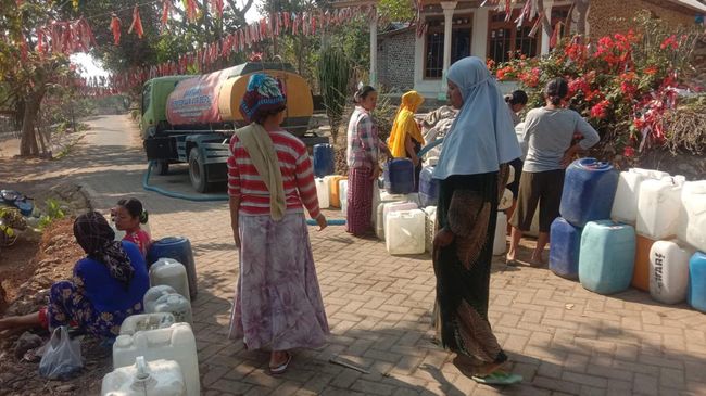 Bantuan air bersih dari Pemkab Mojokerto untuk 3 desa terdampak kekeringan di kaki Gunung Penanggungan, habis. Untuk sementara, bantuan air bersih untuk ribuan warga akan dilanjutkan dengan dana CSR.