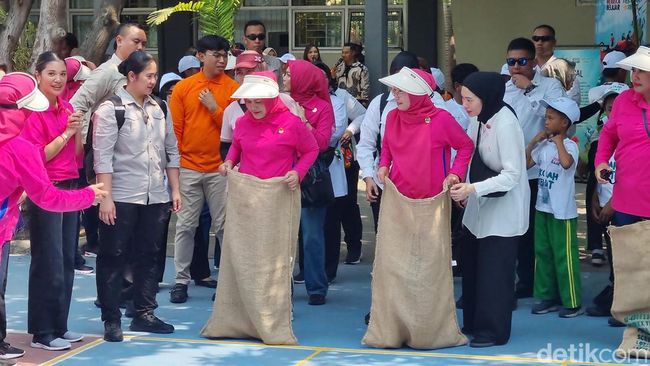 Dari pantauan detikJatim, Iriana dan rombongan tiba di SDN Pakis III Surabaya, sekitar pukul 09.13 WIB. Ia turun dari mobil bersama istri Wapres hingga Ketua Dewan Kerajinan Nasional Daerah (Dekranasda) Jatim Arumi Bachsin.
