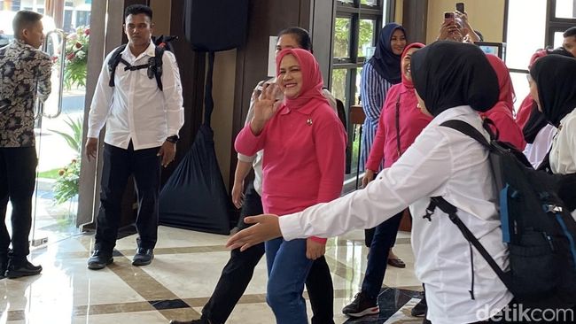 Mereka hadir menggunakan kaus berwarna pink. Ibu negara dan para pendamping menteri Kabinet Indonesia Maju tersebut tampak bersemangat untuk bercengkerama dengan para peserta yang hadir, yakni pelajar SMP dan SMA di Surabaya.