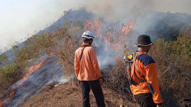 "Rata-rata vegetasi yang terbakar semak dan sebagian pohon yang sudah mulai kering. Sampai sekarang luasan belum bisa dipastikan," terangnya.