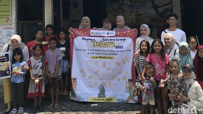 "Teman-teman yang bergabung secara keseluruhan ada sekitar 230 volunteer, tapi kita bagi per lokasi. Total kami bagikan 2.500 susu kotak di beberapa titik di Surabaya," kata Founder Wepose Tabitha Naema kepada detikJatim, Sabtu (28/10/2023).