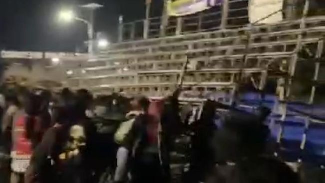 Dalam video yang beredar, tampak massa penonton masuk ke lapangan. Mereka juga merobohkan panggung tribun dan net atau jaring voli.
