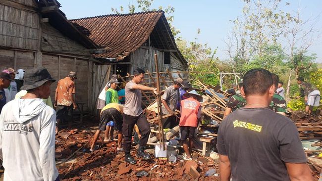 "Satu rumah milik pak Pardi warga Desa Bangunrejo Lor Kecamatan Pitu. Ini kita sedang kerja bakti membersihkan reruntuhan rumah bersama TNI-Polri dan masyarakat," ujar Kapolres Ngawi AKBP Argowiyono saat dikonfirmasi detikJatim, Selasa (31/10/2023).